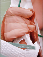 Picture gallery info: Doctor Angel gives a patient a nylon handjob Nylon Handjob with cum in Mouth!