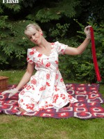Picture gallery info: Evey is relaxing in the garden in her sheer white briefs and shiny RHT stockings! Evey Krystal - The outsiders view!!