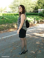 Picture gallery info: Hot brunette Sara is posing outdoors in her silky black nylons and tall shiny heels StilettoGirl Free Sample!